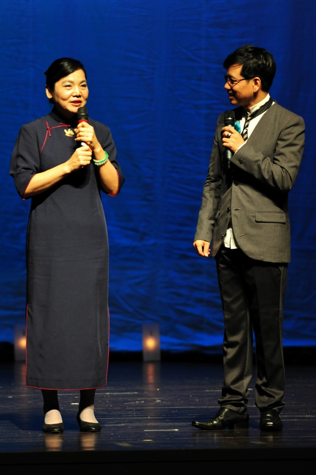 Actress Pan Lili on stage with emcee Chen Kai Lun. (Photo by Khor Kim Seng)