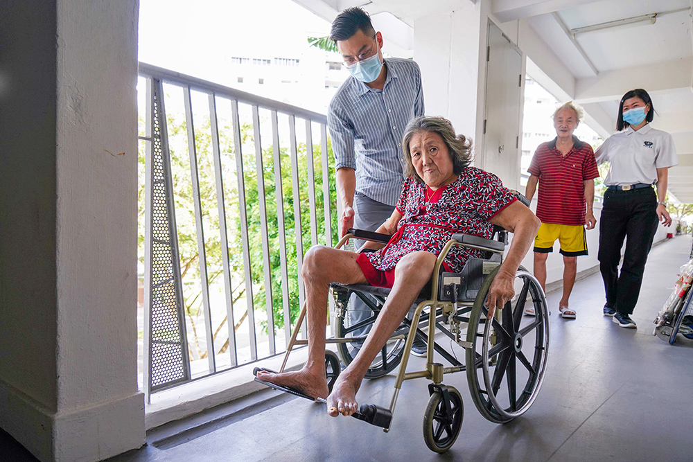 At that moment, 88-year-old Mr Toh patiently sat on the bed, awaiting his scheduled nursing care. Madam Toh has been bedridden after suffering a fall. Mr Toh has since been taking care of her basic needs, such as making her breakfast, bathing her and doing her laundry. However, the seemingly tough Mr Toh had also suffered injuries from two falls last year.