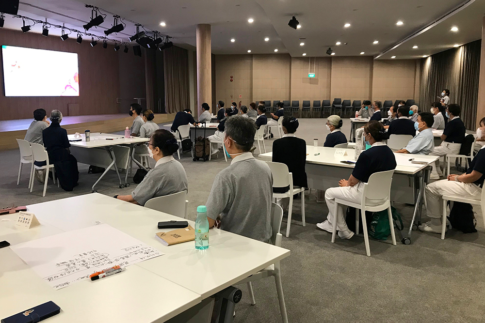 There is always space and time to convey Dharma and show what the people of Tzu Chi are like. Yap Sook Ting raised the example of how when a visitor enters the HYC, volunteers can start explaining the origins of the Bamboo Coin Bank Era based on the posters on both sides of the entrance, as well as Master Cheng Yen’s story of undergoing a retreat in isolation in a small wooden hut. The volunteer can then guide the visitor to look opposite the entrance and share more about Tzu Chi’s efforts, such as rendering humanitarian aid and organising bone marrow donations.