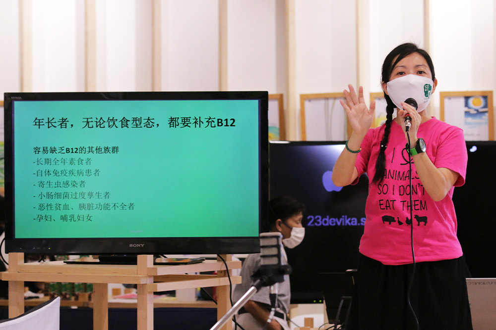 Liu Ling Ling (on the right) generously shares her six-year journey of vegetarianism with the audience, constantly drawing laughter and applause with her articulate and humorous sharing.