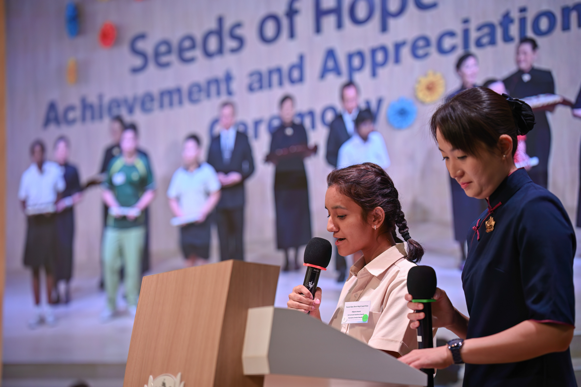 “Express gratitude to each other.” Farah, one of the emcees, read in fluent Mandarin. Remarkably, Farah is also a student beneficiary of the Seeds of Hope Meritorious Award Programme.