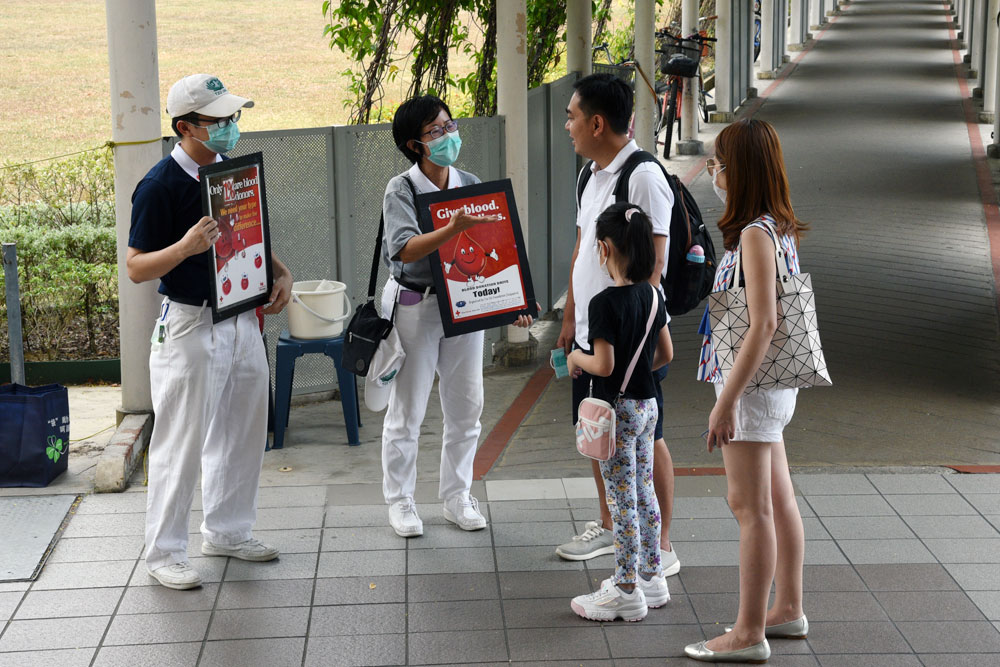 In the past, volunteers would go to crowded places, such as MRT stations to invite people to donate blood on the day of the blood donation drive. However, such effort have been cancelled due to safety measures.