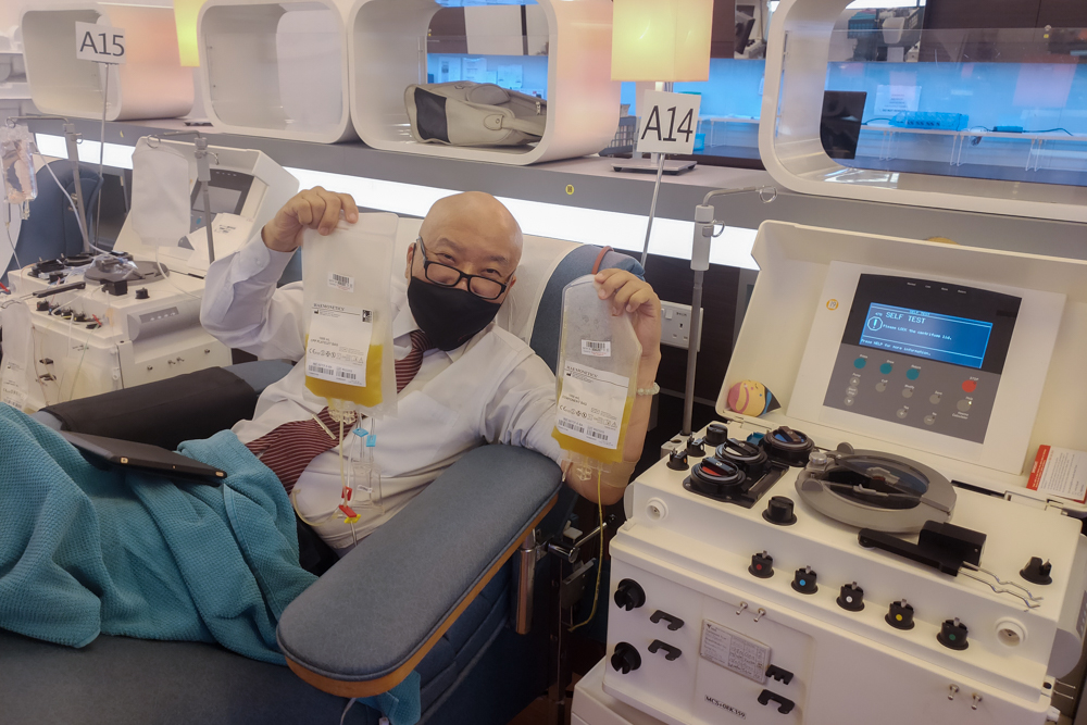 Lim Kim Koon donated his 318th packet of plasma and platelets at the National Blood Bank Centre two days before the blood donation drive. He also encouraged people to donate more blood while they are young. (Photo provided by Lim Kim Koon)