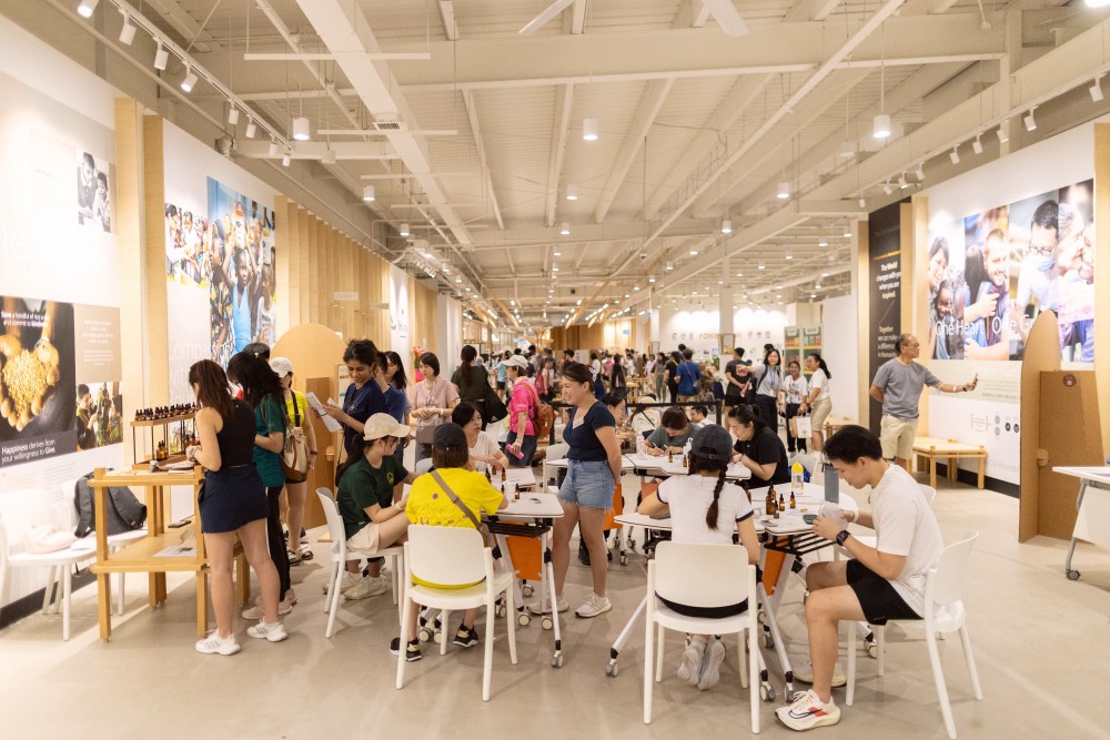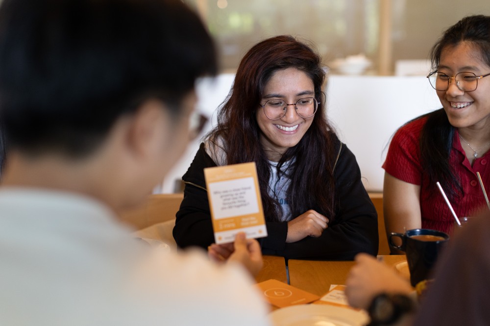 At the “social rest” experiential area, participants engage in deeper conversations with the people around them through card dialogue games. (Photo by Donn Tan)