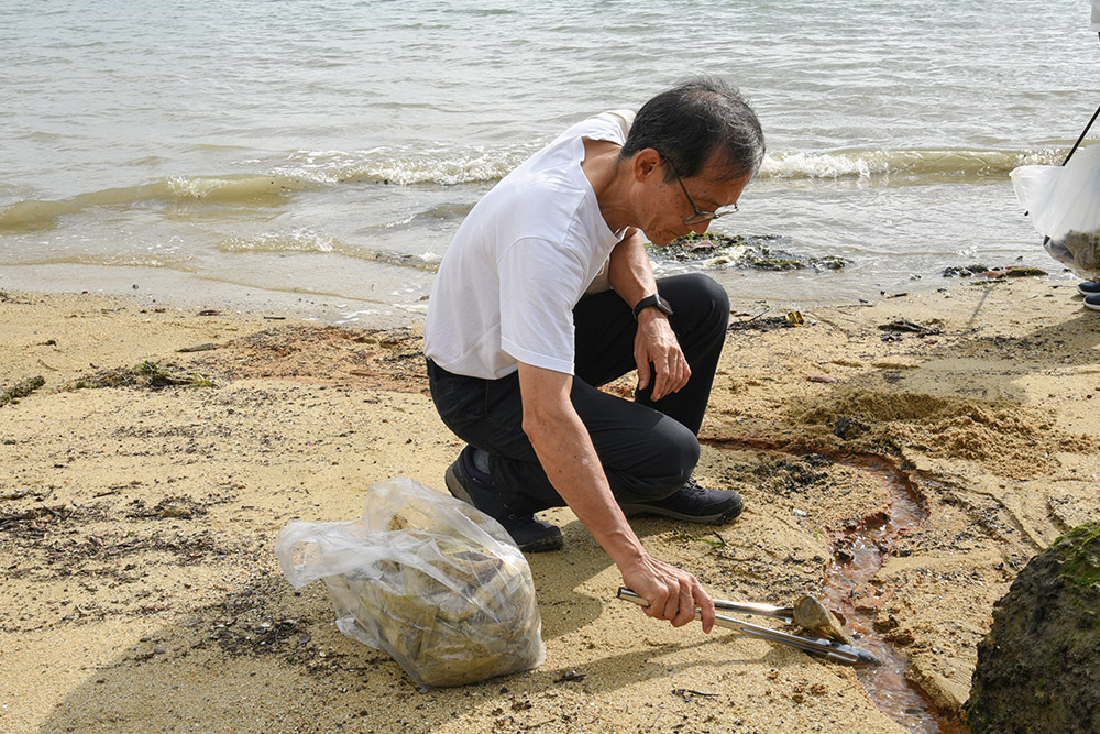Plastic litter cannot be decomposed no matter how small their size is, making them threatening to the marine ecosystem. Therefore, the volunteers are doing their best to pick up any such waste.