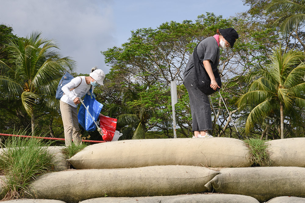 Everyone continues to comb the entire beach for litter, even in less visible areas such as the space in between the Geobags, to ensure that there is not a single waste that is missed out.