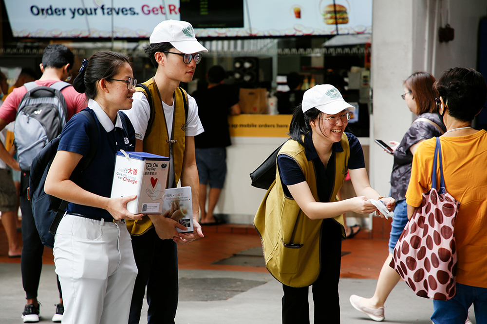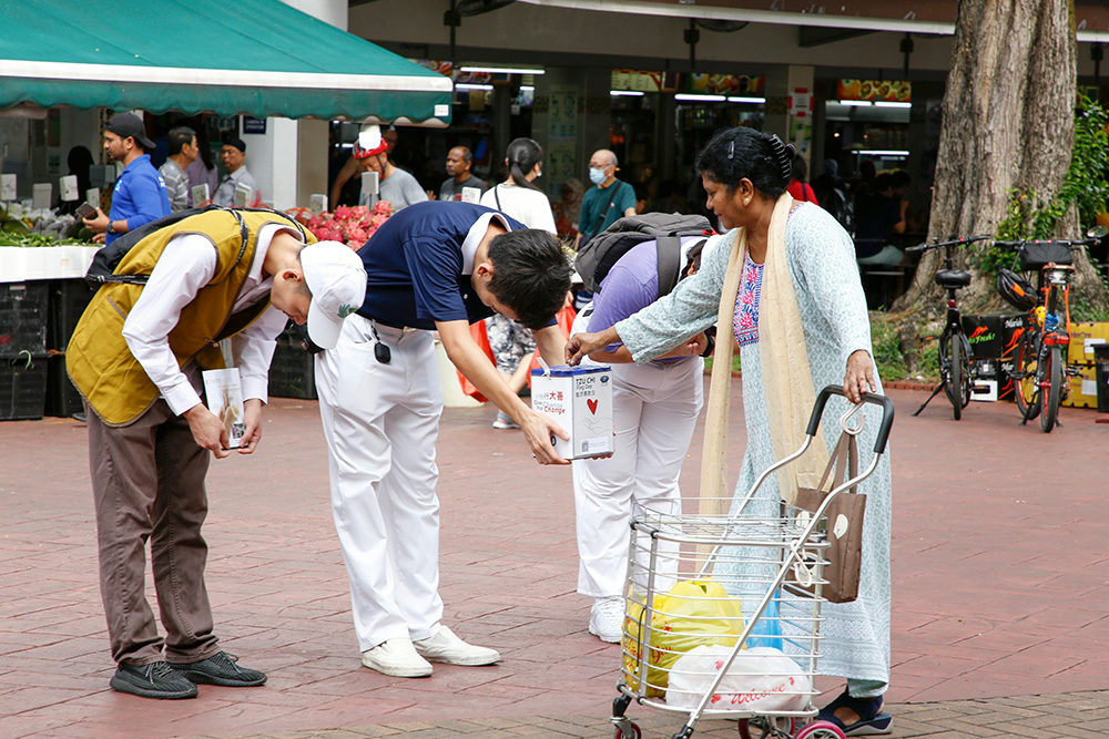 Volunteers can be seen at various MRT stations, wet markets, shopping malls, temples, and other corners of Singapore. (Photo by Bong Kian Hin)