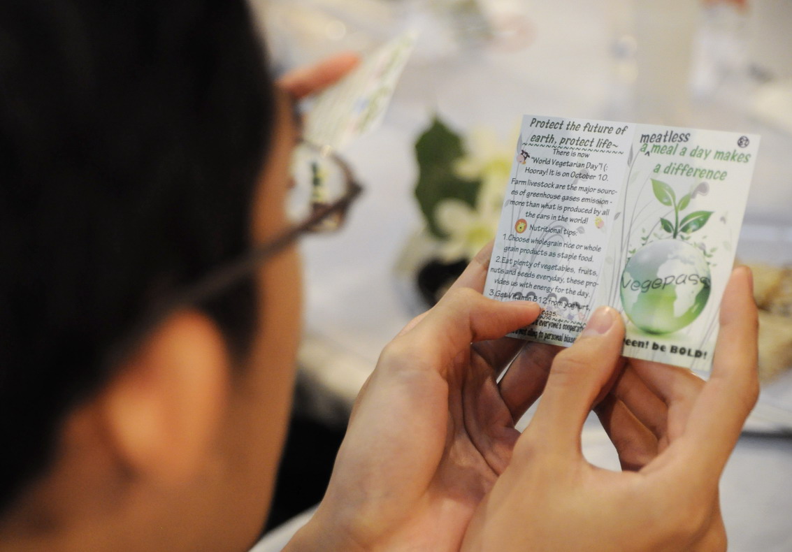The “V-cards” were given out to the future "Veros" (Veggie Heroes) to serve as a constant reminder for them to keep to their vegetarian pledge.