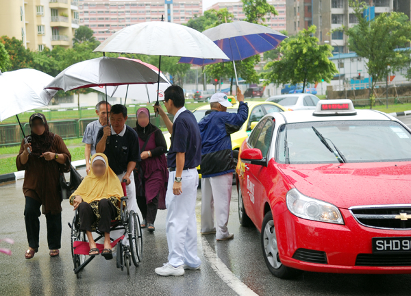 这天和郭女士一起共赴新春发放日之约的,共有250名照顾戶与家属。他们由慈济志工专車接送或搭乘社区巴士來到新加坡静思堂。一整天的连绵大雨,丝毫不减大家的热情。一下车,看到撑伞相迎的志工,照顾户脸上都绽开了笑容。