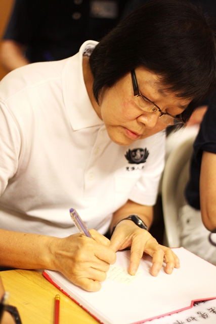 3月2、3日的研习营,召集了全体104名妙手妙音种子,一起来学习唱诵、手势,以及讨论队形编排。由于静思堂的活动频密,第二天长达八小时的研习营只好转移场地,借用了志工白振才刚落成的半独立式洋房来进行。