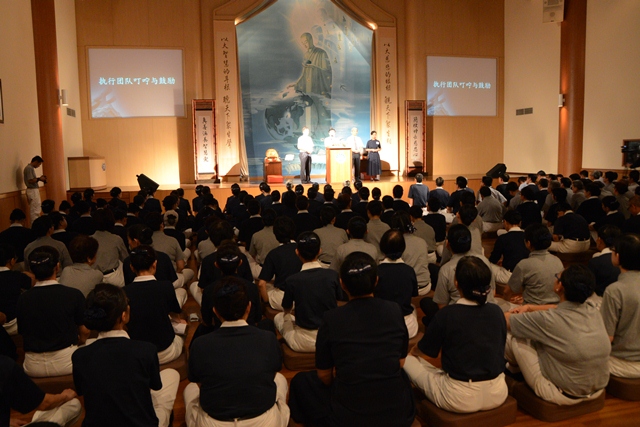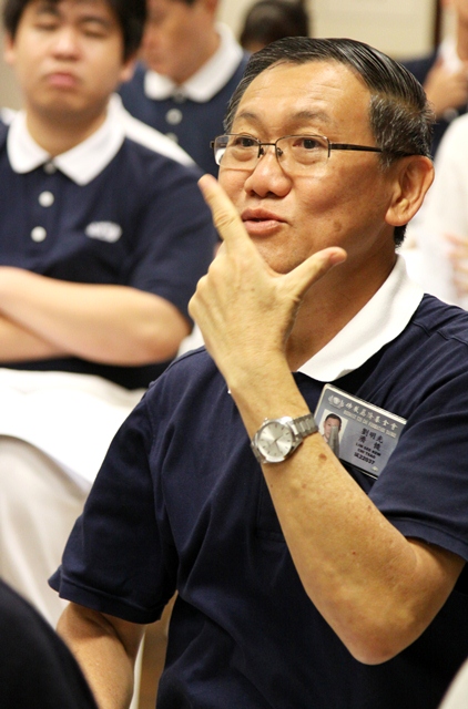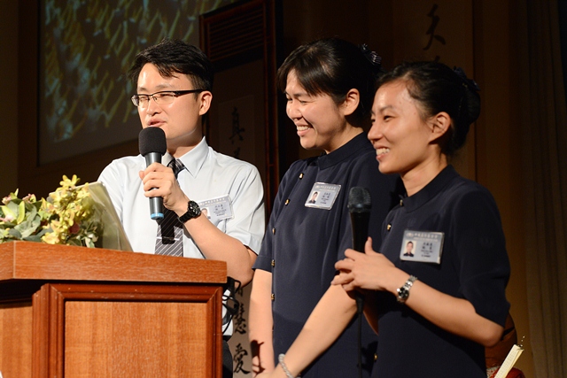 说明会尾声,分会正副执行长们都上台给干部们打气。执行长刘瑞士(济悟)也给大家精神喊话,他分享:“自己也有无力的时候,但每每想到上人建医院时,含着泪,紧咬唇,意志坚定的画面时,就会觉得自己是无比渺小,什么困难都也能承受下去。 ”