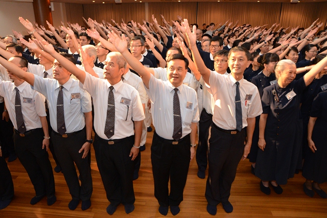 在证严上人的肯定及祝福下,慈济新加坡分会将举办海外第一场水忏经藏演绎。近百名参与说明会的干部为此录制一段影带,向证严上人和常住师父至诚发愿勇猛精进。 (摄 / 潘宝通)