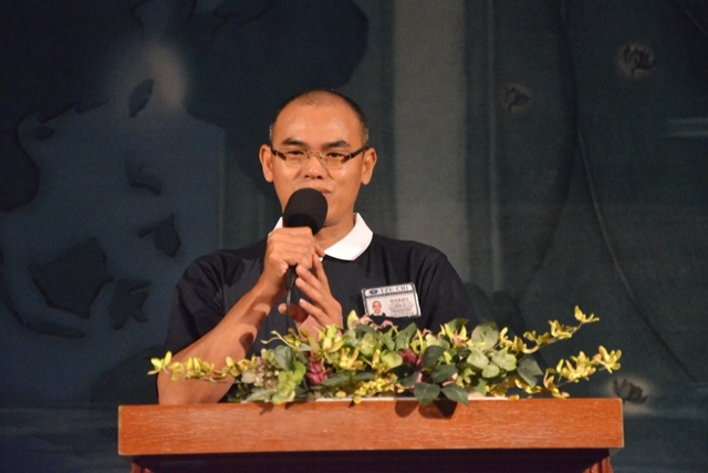 陈福财分享上课后才真正了解四合一架构的缘起与动员,并发愿往后慈济道上,更愿意多配合和承担。 (摄 / 刘素方)