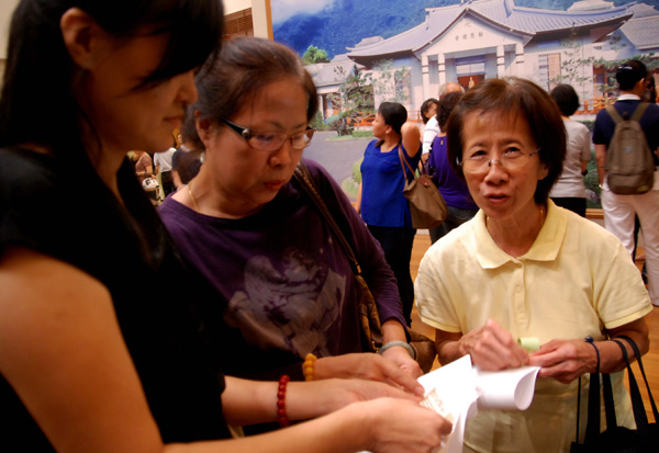 2013年8月3日,曾任《静思语》编辑的洪素贞(静原)老师分享编写《静思语》和慈济歌的心得体悟,吸引近四百人出席。(摄 / 王素真)
