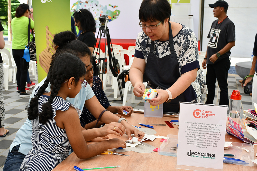 倪喜妲的父母专程从淡宾尼带她和妹妹一起参与活动,让爱护环境的意识植入孩子的心灵。他们也参与升级再造(upcycling),用饮料包装盒子做成各种各样不同的环保用品。