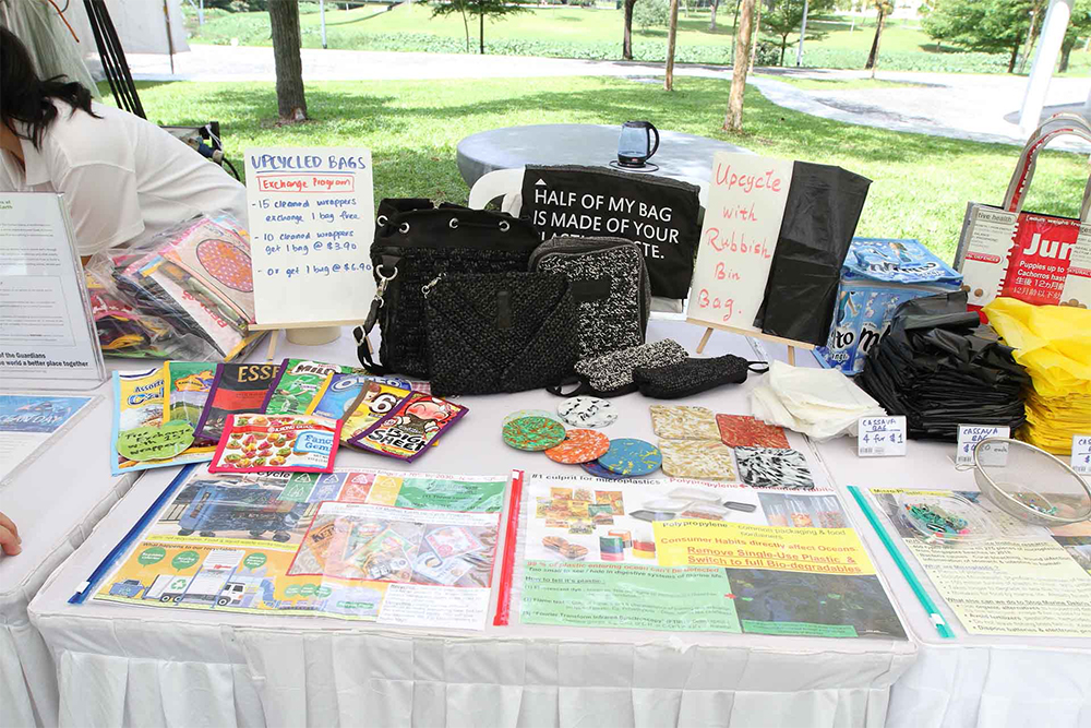 活动会场也设有故事书回收区(MOBY the book whale),让爱好阅读的民众把家中故事书带来互相交换或环保循环使用。慈济摊位隔邻的“可持续发展计划”(The Sustainability Project)摊位,则展示了用植物制成的环保用品,以及用回收的美丽包装袋缝制的成实用环保袋。