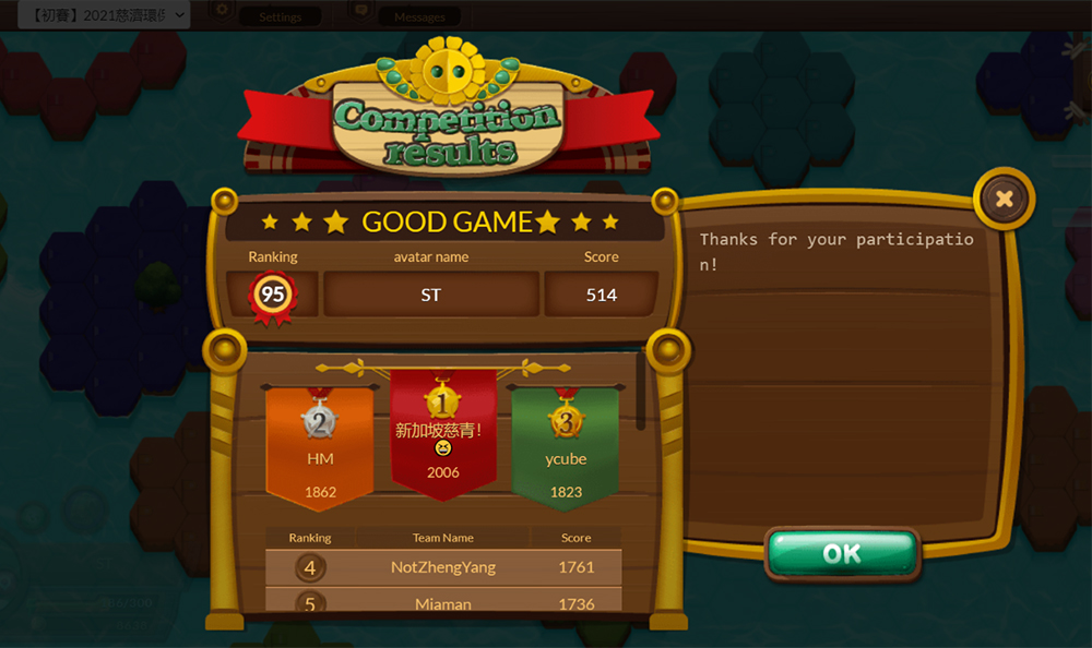 玩电竞游戏,还能吸收环保知识。2021年11月26日至29日,经过四天的答题抢分,“慈济x PaGamO 国际杯环境教育电竞大赛”新加坡初赛在线上圆满结束,赛事吸引了396人参赛,反响热烈,最终选出30名积分最高的新加坡代表,晋级全球总决赛,与其他五个国家或地区的选手一较高低。
