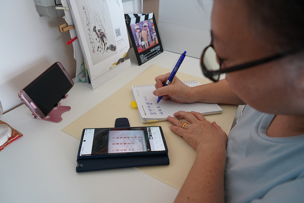 疫情后各地薰法香改为志工在家连线参与,这为李淑芳带来改变的契机,她可以出动电脑、手机和笔记本,同时操作,也因为独居的环境,可以更专注于闻法。为了加强自己的读写能力,李淑芳每天花两小时抄写上人晨语开示的手扎和《法华经》经文。遇到生字,她用手机应用程序查询,学习读音和字义。如此拼命,就是为了求法。