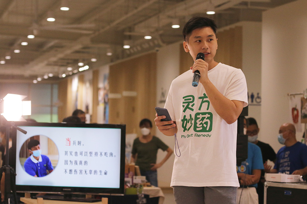 茹素青年古翊劭,从13岁开始蔬食,妈妈也在一周后陪他一起茹素。今年26 岁、担任飞机工程师的他,分享在国民服役期间吃素也很方便,可以选择中式和印度素食餐。