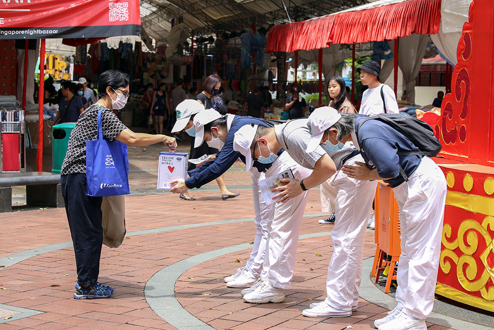 2015年,慈济基金会(新加坡)向国家福利理事会申请举办募款日,并首次走上街头劝募。2020和2021年募款因为疫情而暂停,今年是志工疫情后再次走入社区募心募爱,启发人人一念善心。