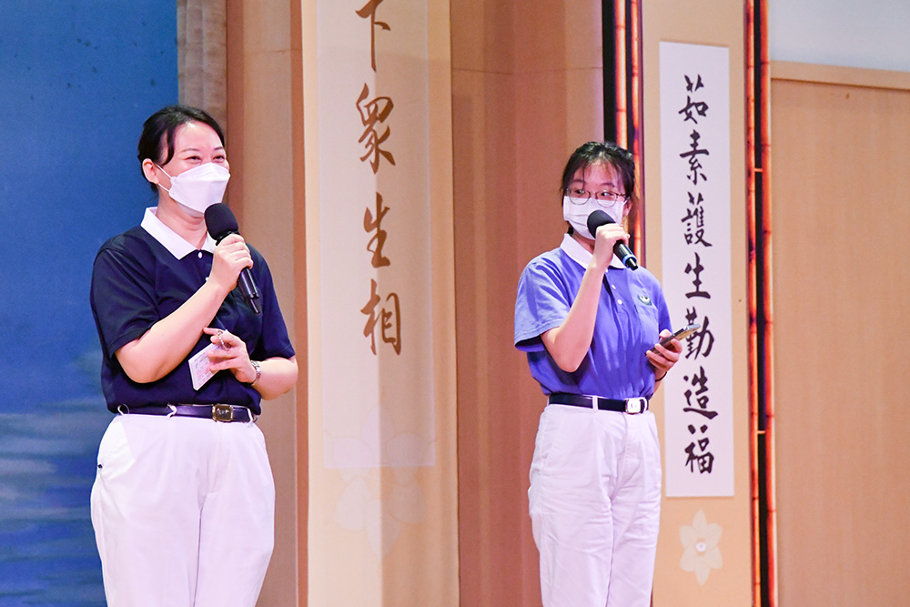 能够站上舞台承担司仪,在大家面前说话,是毕业慈少连家熙(右)很大的进步。(摄/ 林碹珠)