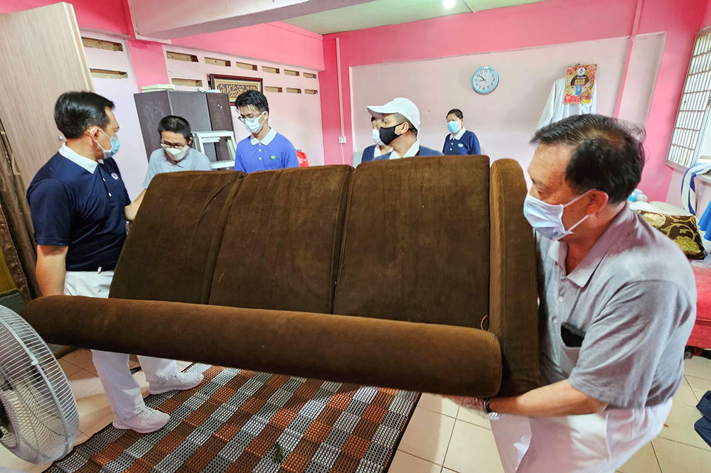 面对五月炎热的新加坡天气,志工谢美燕也是汗流浃背地参与打扫工作。她卷起裤管,将厕所清洗得发亮后,累得瘫坐一旁。她说:“那间厕所,我们洗刷了十多次,真的太脏了!”厨房和厕所,经过志工的多次洗刷,变得焕然一新,大家都感到非常高兴。