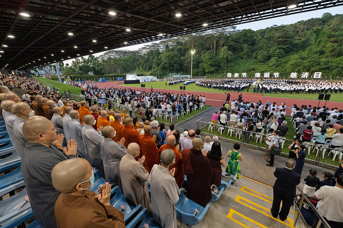 慈济功德会(新加坡)因新冠疫情无法举办大型法会,时隔四年终于可以到户外体育场,举办盛大的浴佛大典。2023年5月14日,在全场近3500人的殷切期待中,慈济57周年庆暨浴佛大典拉开序幕。