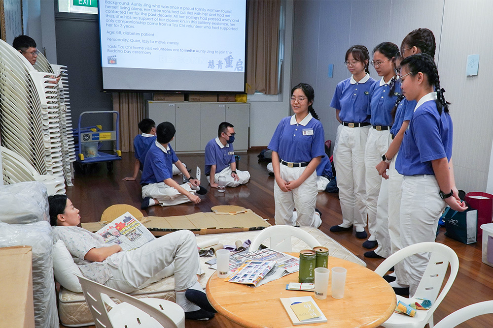 慈青学员要一起协作,学习与照顾户恰当和友善互动。在模拟情境中,慈青得以思考慈济志工在慈善访视可能遇到的挑战,以及理解到“济贫教富”的精神。