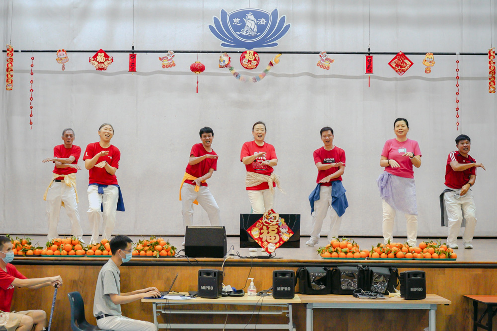 2025年2月16日,慈济志工到心理卫生学院(IMH)进行常月关怀,和院友一起欢庆新春。(摄/ 林春慧)